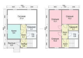 | Под усадку (без отделки) | 7х9 | Cруб дома 140х140 мм | 1582500 | Заказать |