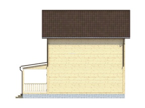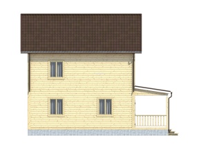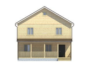 Главная отличительная черта дома – большой террасой. Тип крыши: двускатная с покрытием из ондулина красного, зеленого или коричневого цвета. Окна двойные зимние со стеклами 1x1,2 м. Двери межкомнатные филенчатые (0,8x2,0 м). Количество окон, дверей может меняться согласно предпочтениям заказчика.