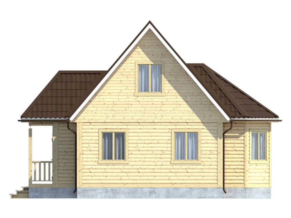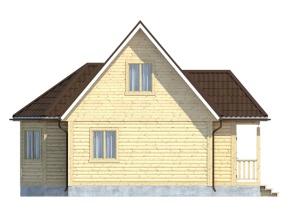 Главная отличительная черта дома – эркером. Тип крыши: двускатная с покрытием из ондулина красного, зеленого или коричневого цвета. Окна двойные зимние со стеклами 1x1,2 м. Двери межкомнатные филенчатые (0,8x2,0 м). Количество окон, дверей может меняться согласно предпочтениям заказчика.