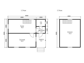 Если вы мечтаете о загородном доме, вас заинтересует этот проект полутораэтажного каркасного дома. Постройка имеет размеры 6х8 м. и может служить полноценным жильем. Общая площадь дома – 64.3 кв.м..