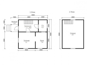Если вы мечтаете о загородном доме, вас заинтересует этот проект полутораэтажного каркасного дома. Постройка имеет размеры 6х6 м. и может служить полноценным жильем. Общая площадь дома – 55 кв.м..
