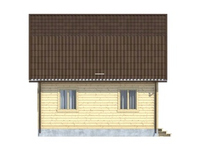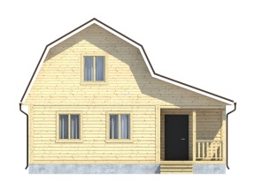 Главная отличительная черта дома – . Тип крыши: двускатная с покрытием из ондулина красного, зеленого или коричневого цвета. Окна двойные зимние со стеклами 1x1,2 м. Двери межкомнатные филенчатые (0,8x2,0 м). Количество окон, дверей может меняться согласно предпочтениям заказчика.