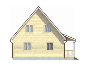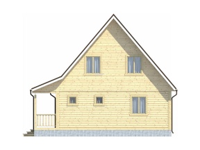 Главная отличительная черта дома – . Тип крыши: двускатная с покрытием из ондулина красного, зеленого или коричневого цвета. Окна двойные зимние со стеклами 1x1,2 м. Двери межкомнатные филенчатые (0,8x2,0 м). Количество окон, дверей может меняться согласно предпочтениям заказчика.
