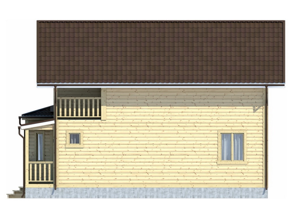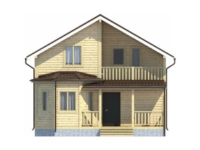 Главная отличительная черта дома – балконом и эркером. Тип крыши: двускатная с покрытием из ондулина красного, зеленого или коричневого цвета. Окна двойные зимние со стеклами 1x1,2 м. Двери межкомнатные филенчатые (0,8x2,0 м). Количество окон, дверей может меняться согласно предпочтениям заказчика.